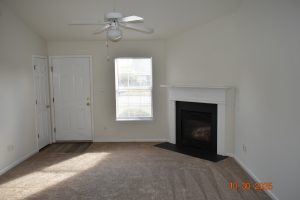 living room w/ gas operated fireplace, new carpeting!